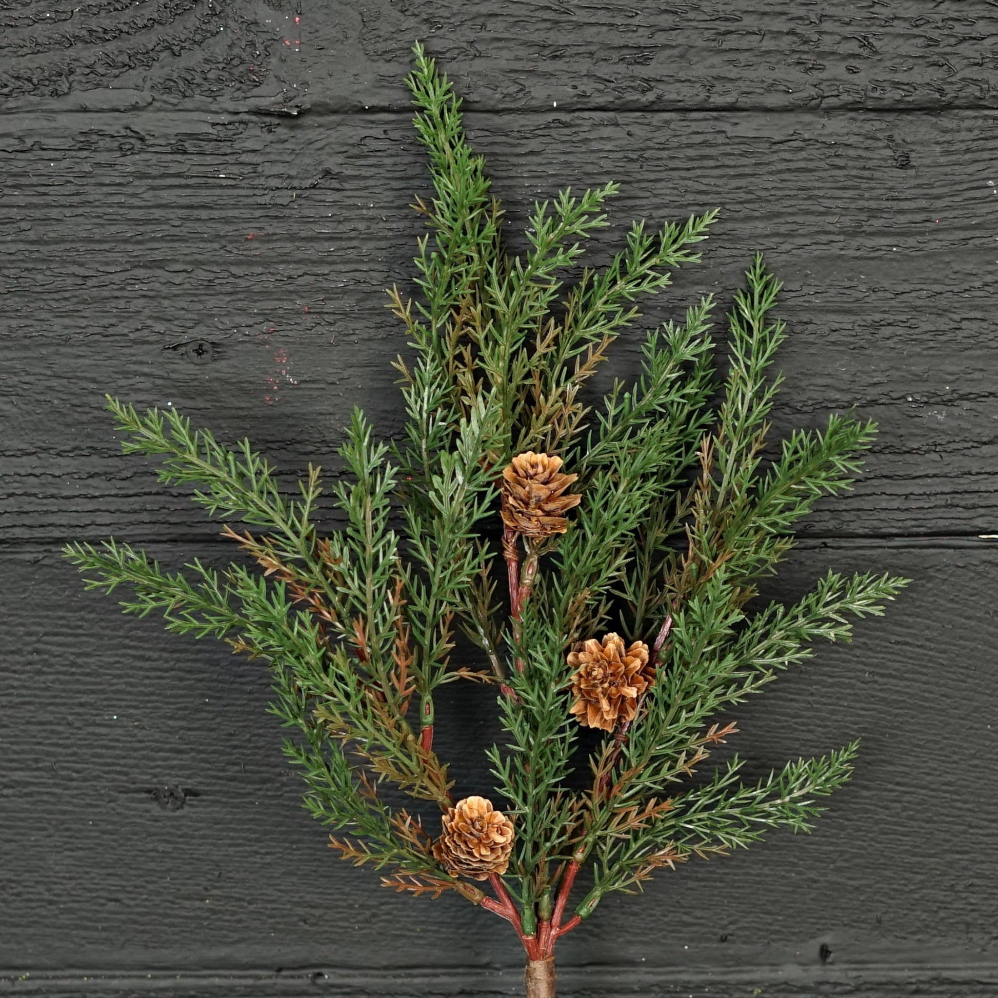 Add a naturally lush look to your tree with these 17in Pick-Dark Green Country Cypress Pine w. Pinecones picks.